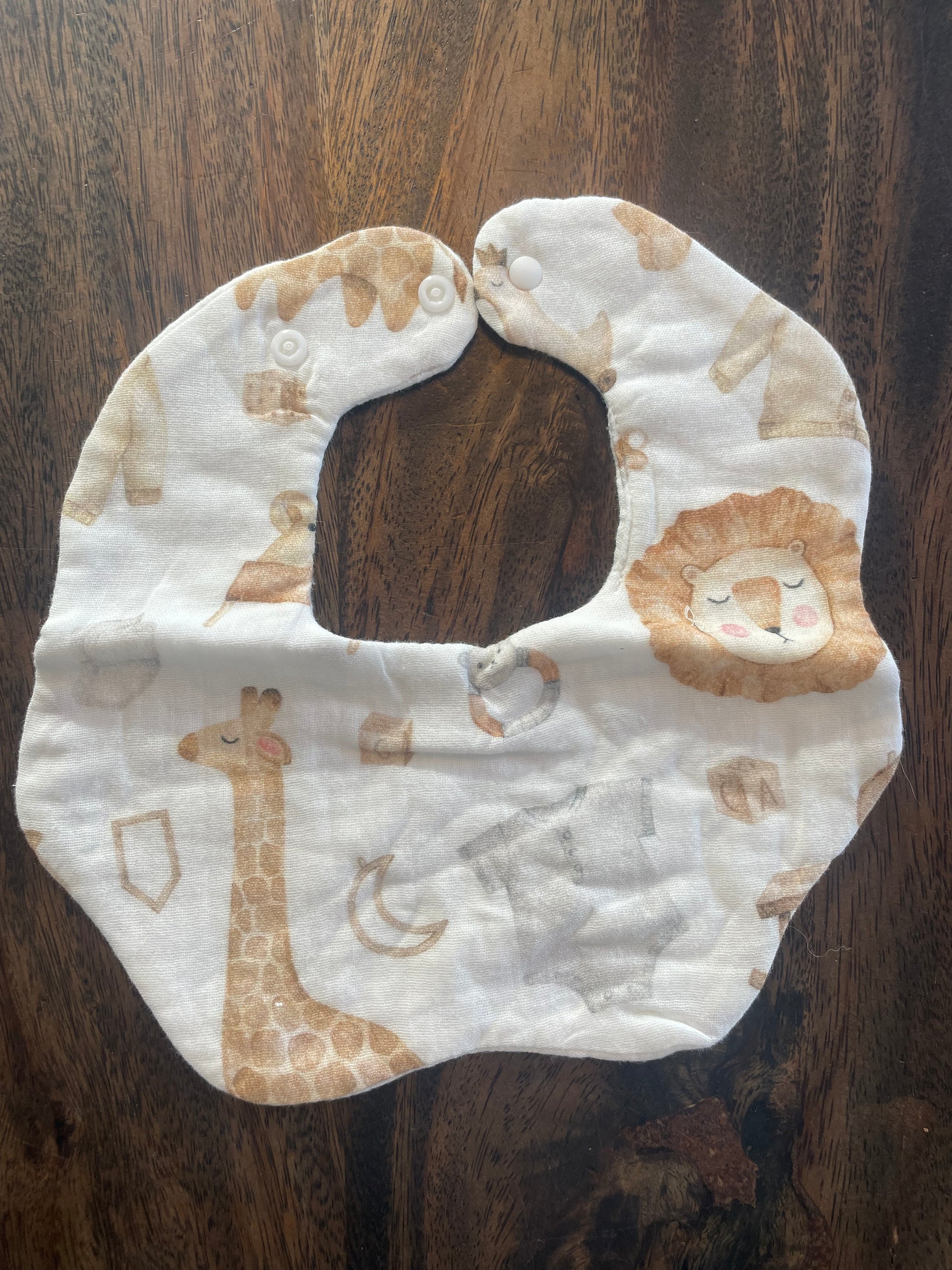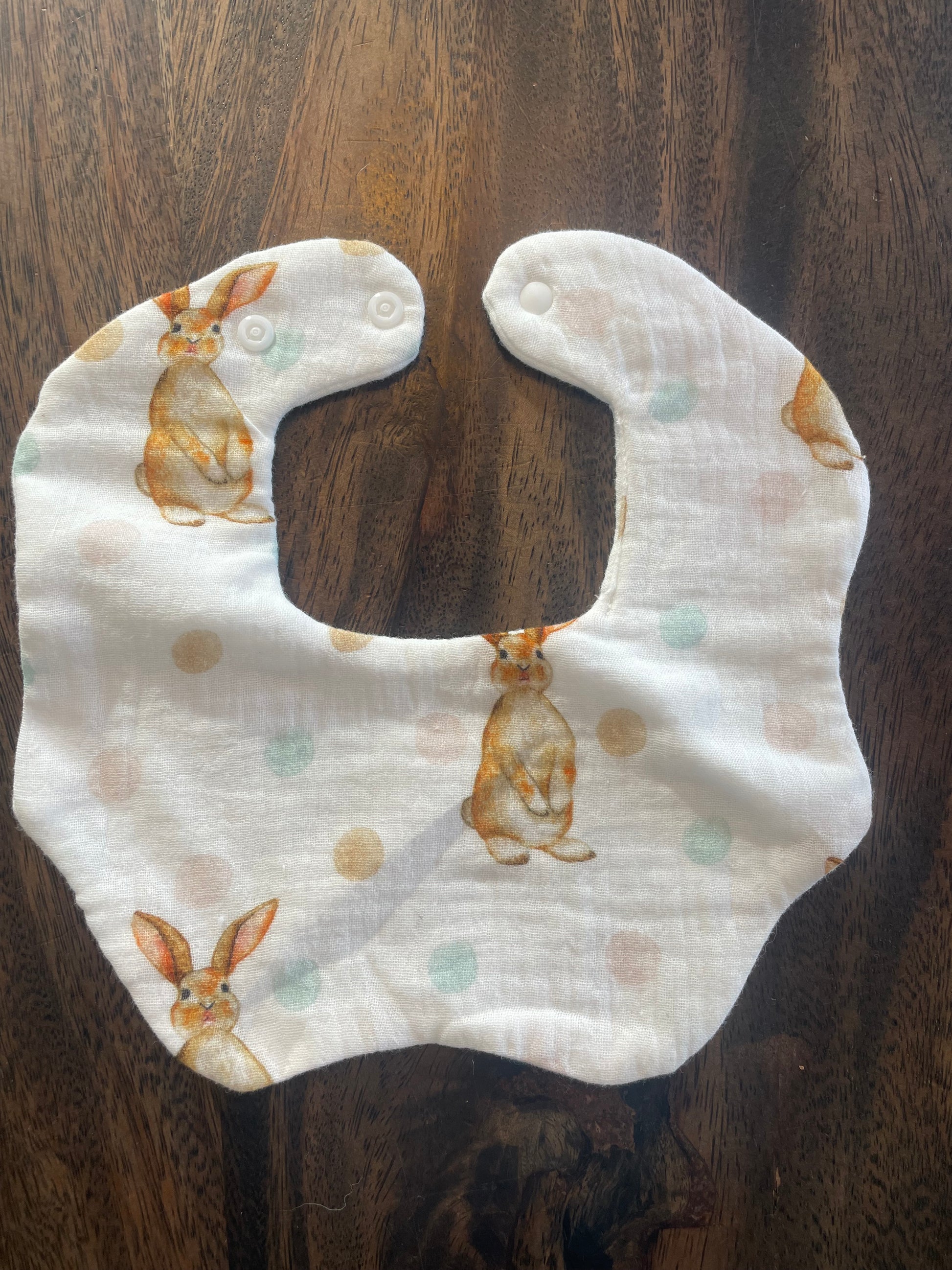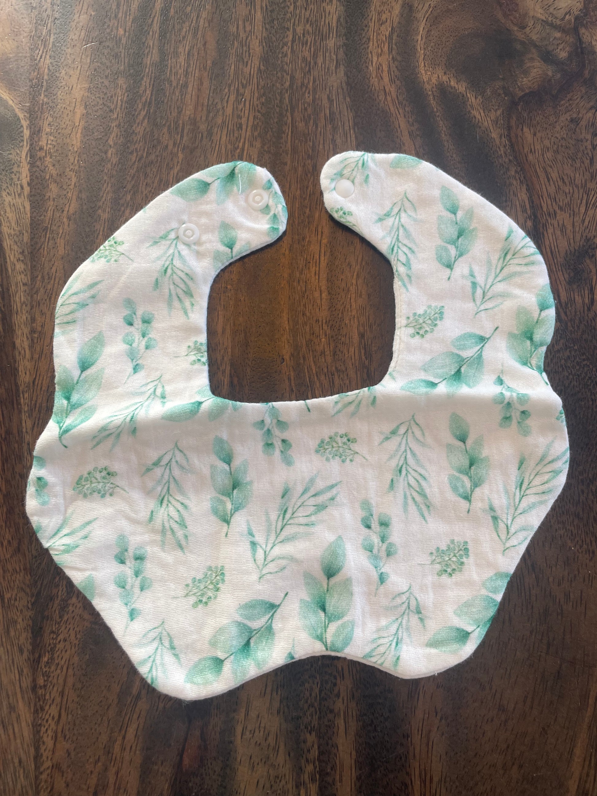 Il y a deux attaches à bouton pression pour bien ajuster la bavette sur le bébé.