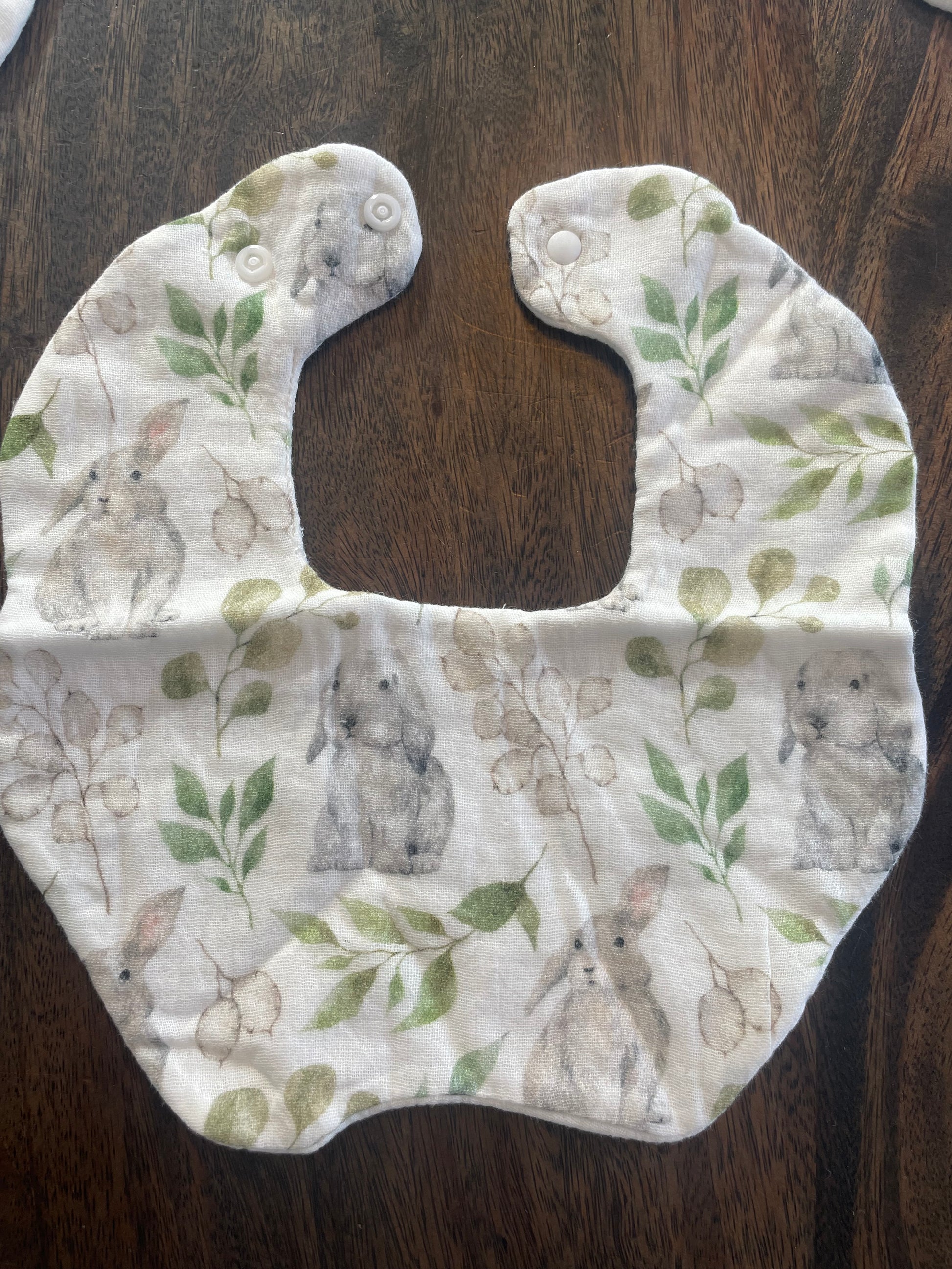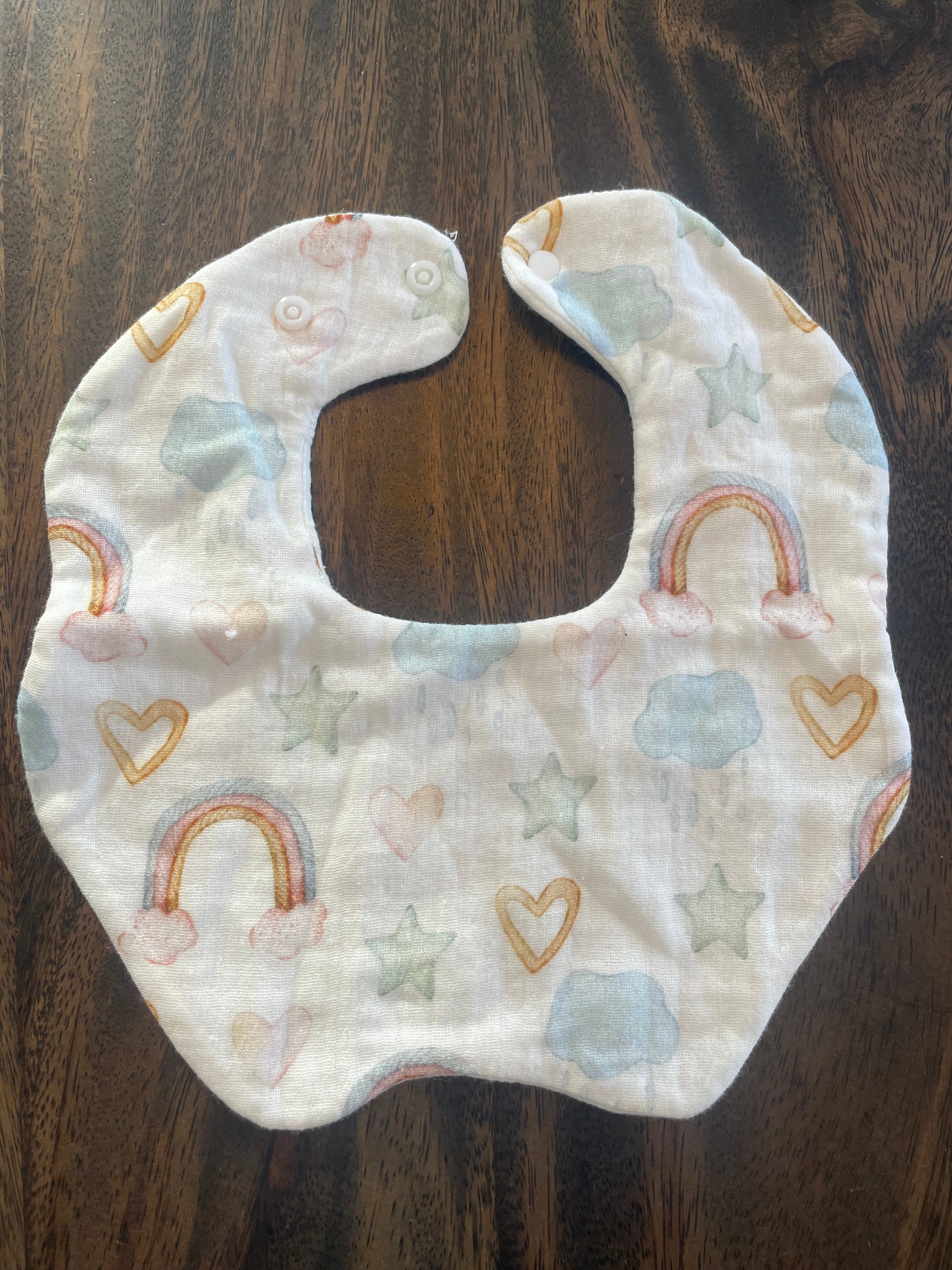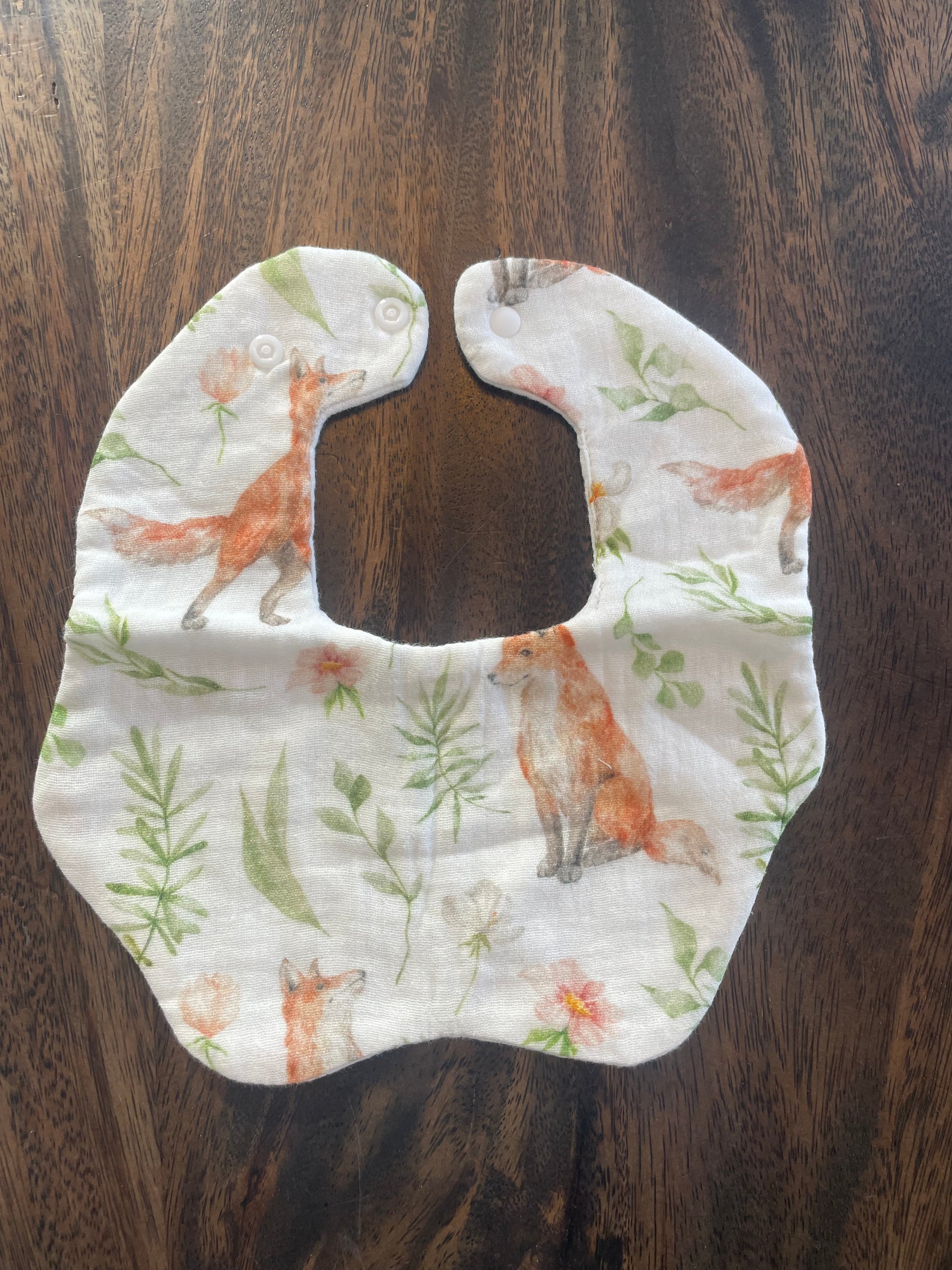 Il y a deux attaches à bouton pression pour bien ajuster la bavette sur le bébé.